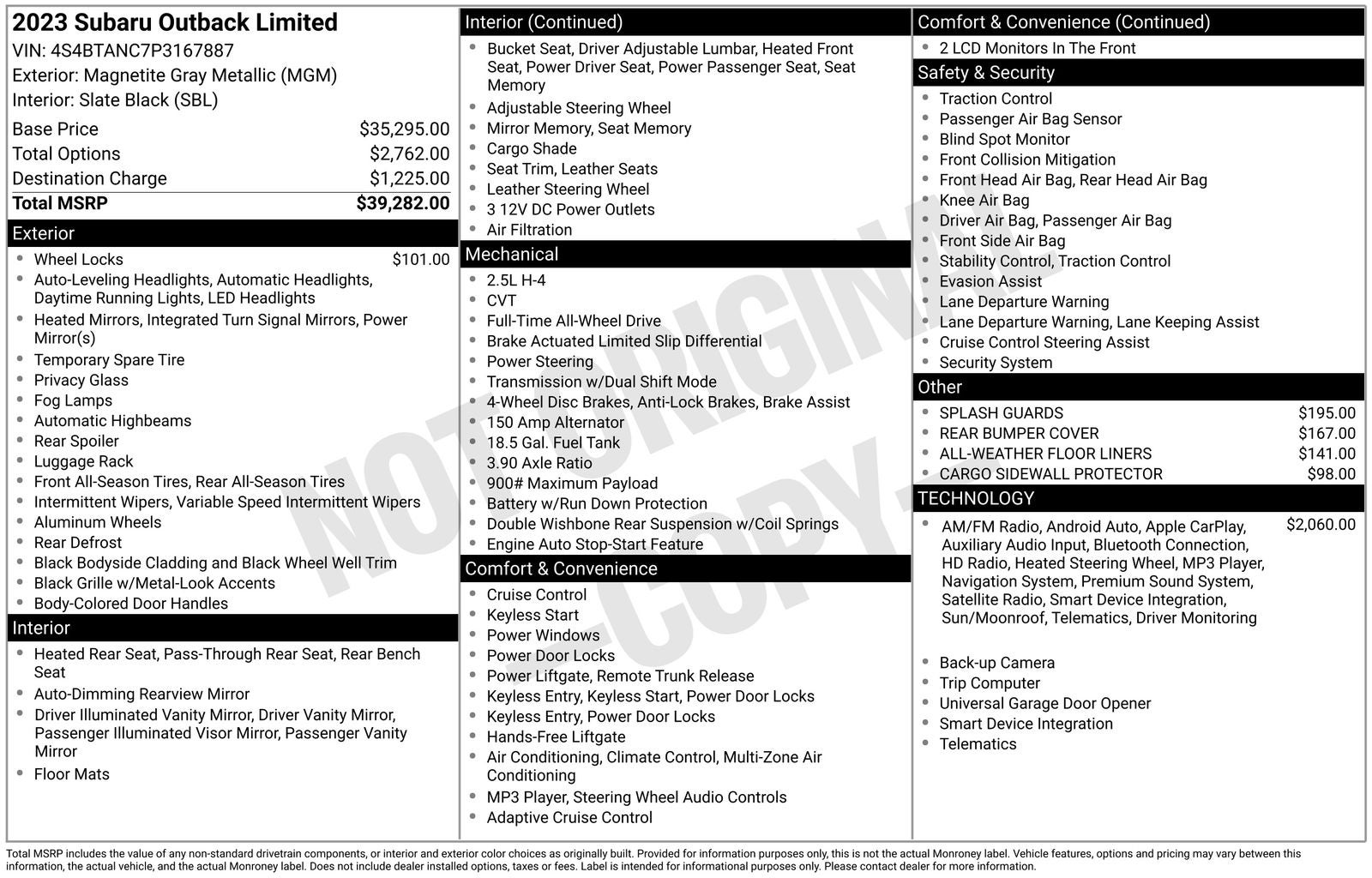 - Vehicle Name: Subaru Outback