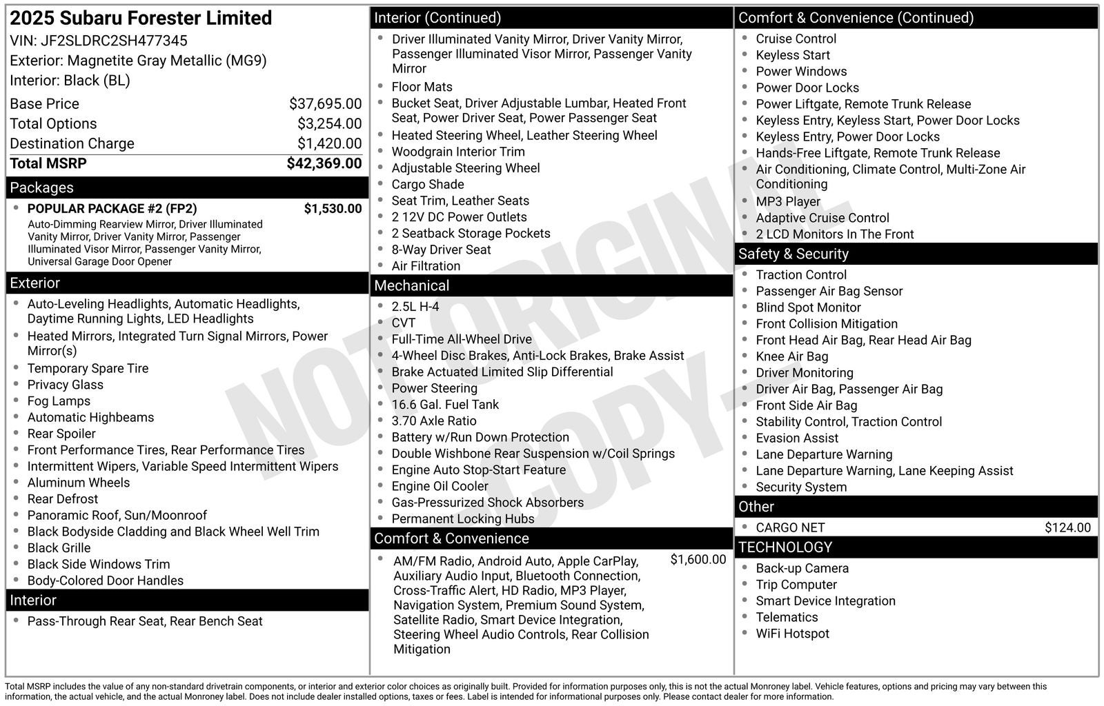 Carfax indicates only 1-Owner!!, Carfax shows no accidents!!, Forester Limited, 4D Sport Utility, 2.5L 4-Cylinder DOHC 16V, Lineartronic CVT, AWD, Magnetite Gray Metallic, Black Leather, All-Weather Floor Liners, Auto-Dimming Exterior Mirror w/Approach Light, Auto-Dimming Mirror w/Compass & HomeLink, Cargo Tray, Exterior Parking Camera Rear, harman/kardon Audio & Navigation & RAB, LED Upgrade, Popular Package #2, Power Liftgate, Power moonroof: Panoramic, Radio: Subaru 11.6 Multimedia Navigation System, Rear Bumper Cover, Rear Seatback Protector, Reverse Automatic Braking (RAB) System. CARFAX One-Owner. Clean CARFAX. Odometer is 6374 miles below market average! Subaru Certified Pre-Owned Details: