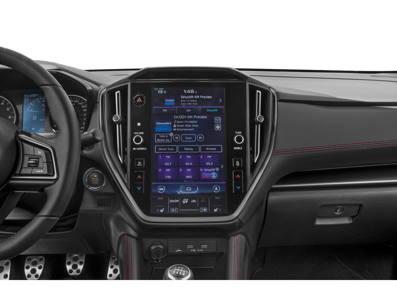 - Radio: Subaru 11.6" Multimedia System w/Navigation -inc: multi-touch gesture high resolution display screen, voice activated controls, voice activated navigation, Bluetooth® audio streaming connectivity, Bluetooth® hands-free phone connectivity, Bluetooth® hands-free SMS text messaging connectivity (applicable w/compatible cell phone), Near Field Communication (NFC), TomTom navigation software w/what3words, iPod control capability, rear-vision camera display, SiriusXM All Access radio (4 months free trial/subscription required after), SiriusXM w/360L (4 months free platinum trial included/subscription required after), SiriusXM Traffic (3 years free trial/subscription required after), SiriusXM Travel Link (3 years free trial/subscription required after), smartphone integration: Android Auto w/full screen view and wireless connection, Apple CarPlay w/full screen view and wireless connection, My Subaru cloud applications, USB and Over The Air (OTA) audio system update, 504 watt harman/kardon speaker system w/11 speakers and roof mounted audio, satellite and connected services antenna